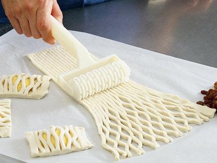 Þú rúllar yfir deigið og gerir göt sem munda netmöskva.