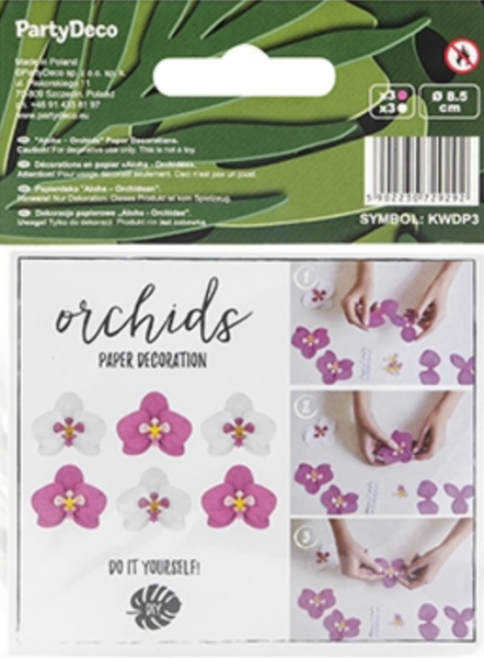 Borðskraut - Aloha orkideur úr pappa - Ca 8,5 cm - 6 stk