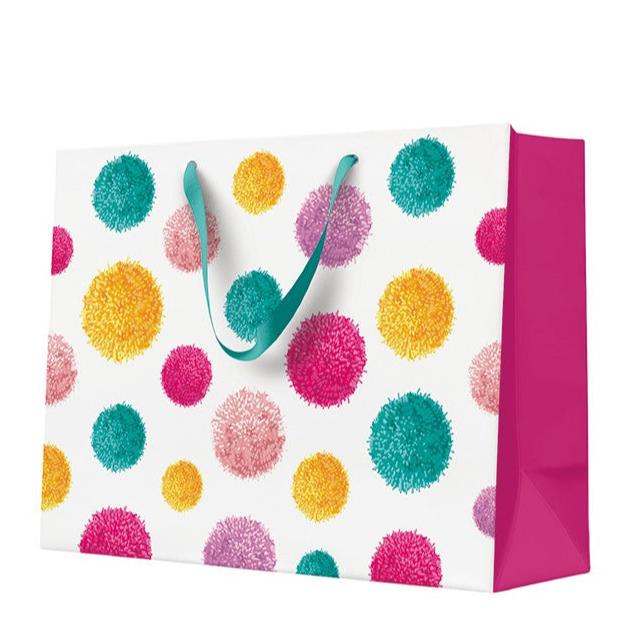 Gjafapoki - 13 x 33 x 26 cm - Colorful Pompoms