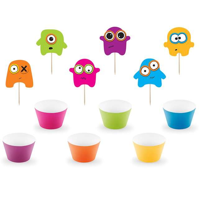 Muffinskápur og skrautpinnar - Skrímsli - 6 kápur og pinnar og 10 augu