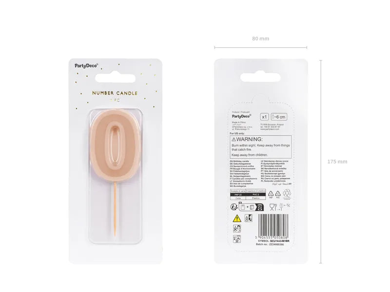 Númerakerti - 0 - 6 cm - Dusty rose