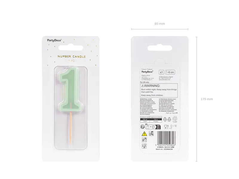 Númerakerti - 1 - 6 cm - Ljósgræn