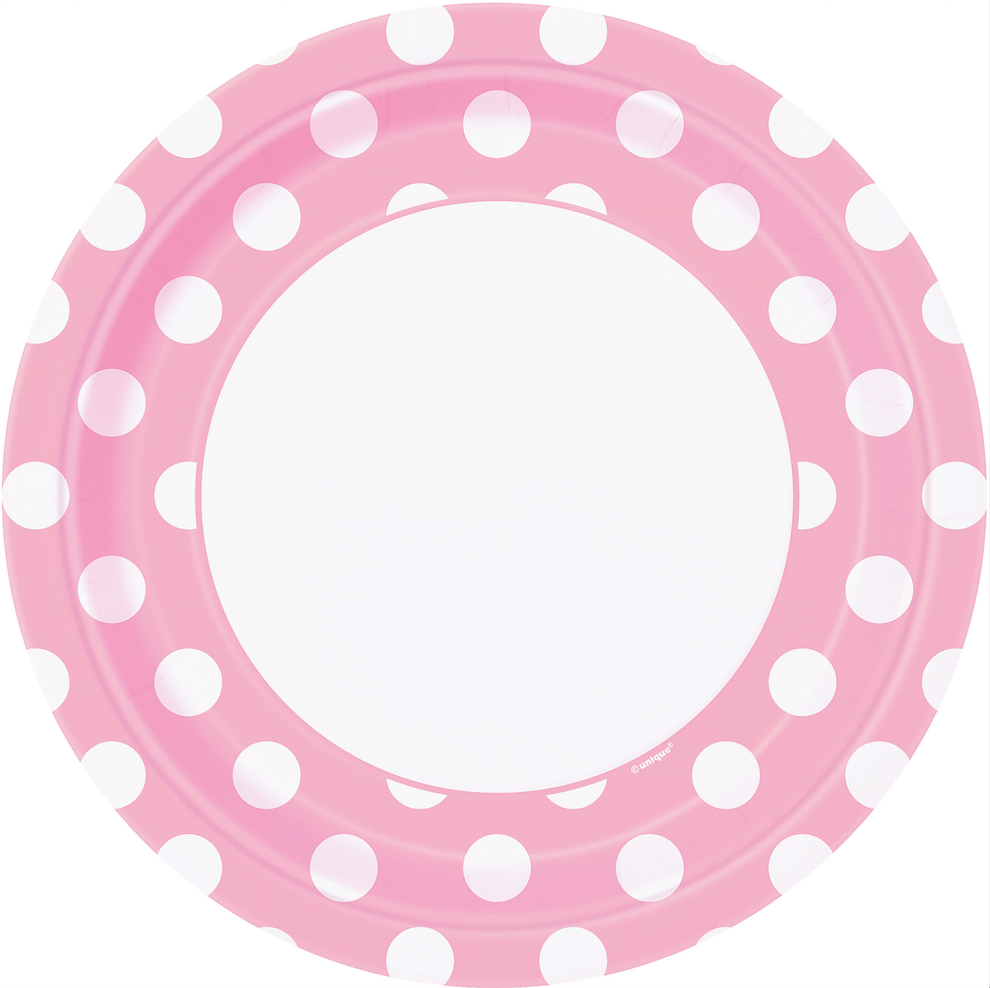 Pappadiskar - Með doppum - 22 cm - 8 stk - Ljósbleikir