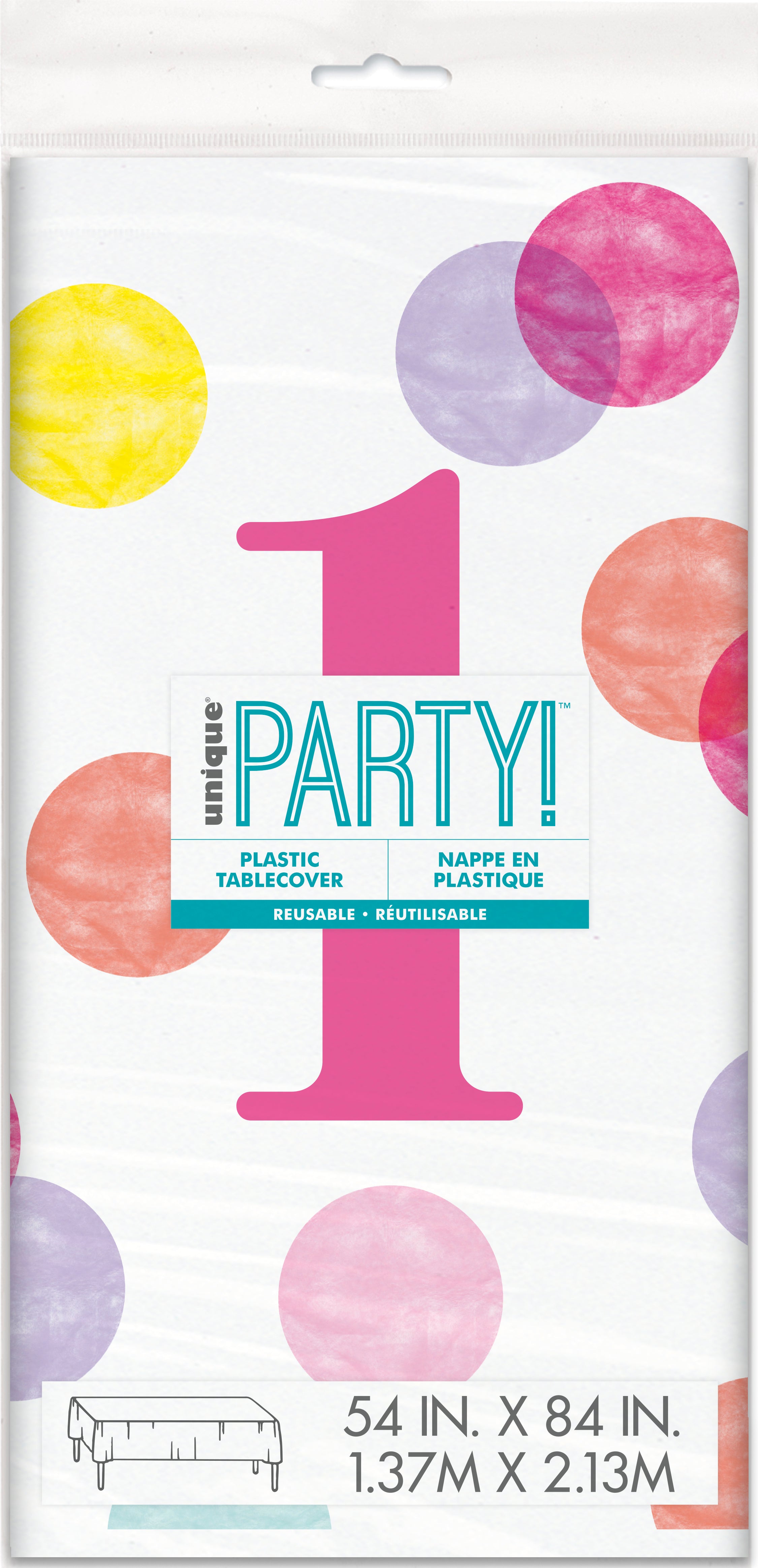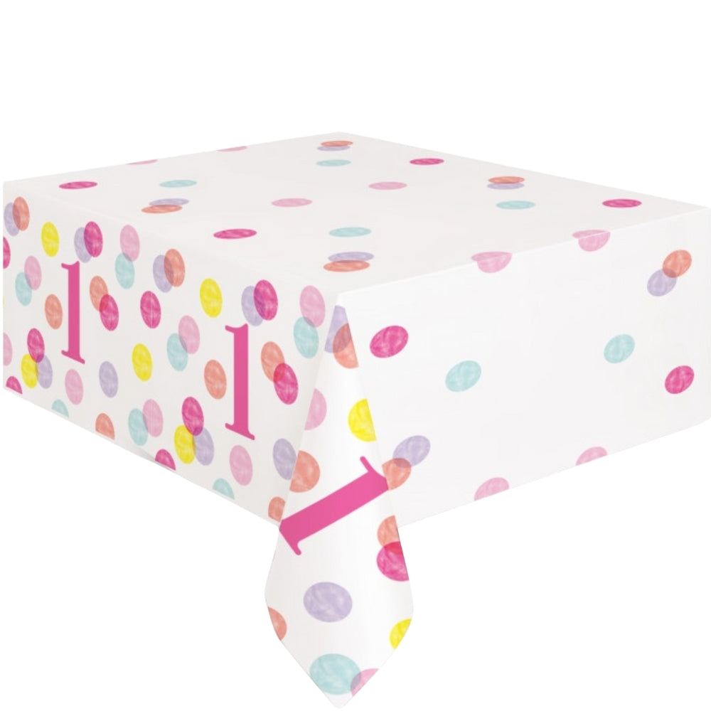 Plastdúkur - 1 árs - Með doppum - 137 x 213 cm - Bleikur