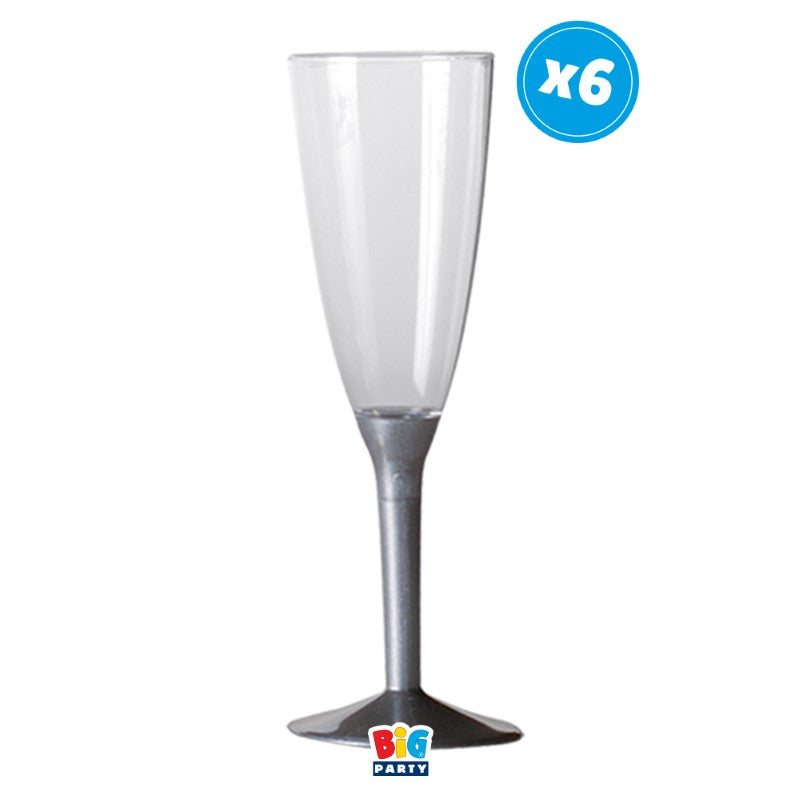 Plastglös á fæti - Léttvín - 180 ml - 6 stk - Silfur fótur