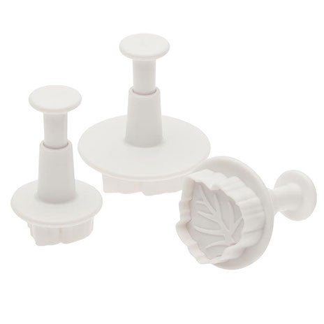 Frábær mót til þess að skera út bergfléttulauf. Mótin eru með þrýstibúnaði svo það er einkar auðvelt að ná sykurmassanum eða deiginu úr mótunum. Ef þú þrýstir takkanum niður á meðan massinn er enn á borðinu kemur mynstur í sykurmassann eða deigið.