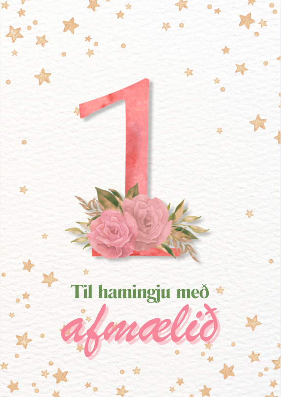 Tækifæriskort - Eins árs - Bleikt - 17 x 12 cm