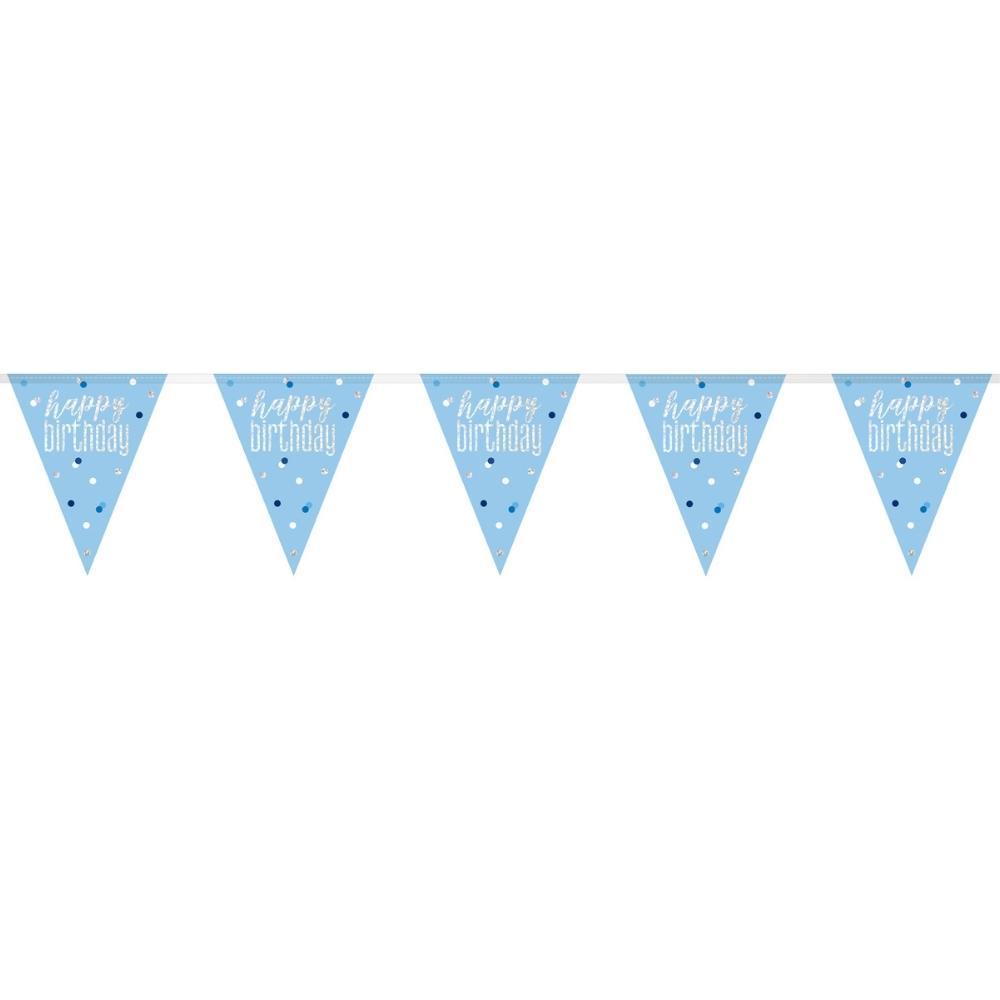 Fánalengja - happy birthday - Ljósblá og silfur - 2,74 cm