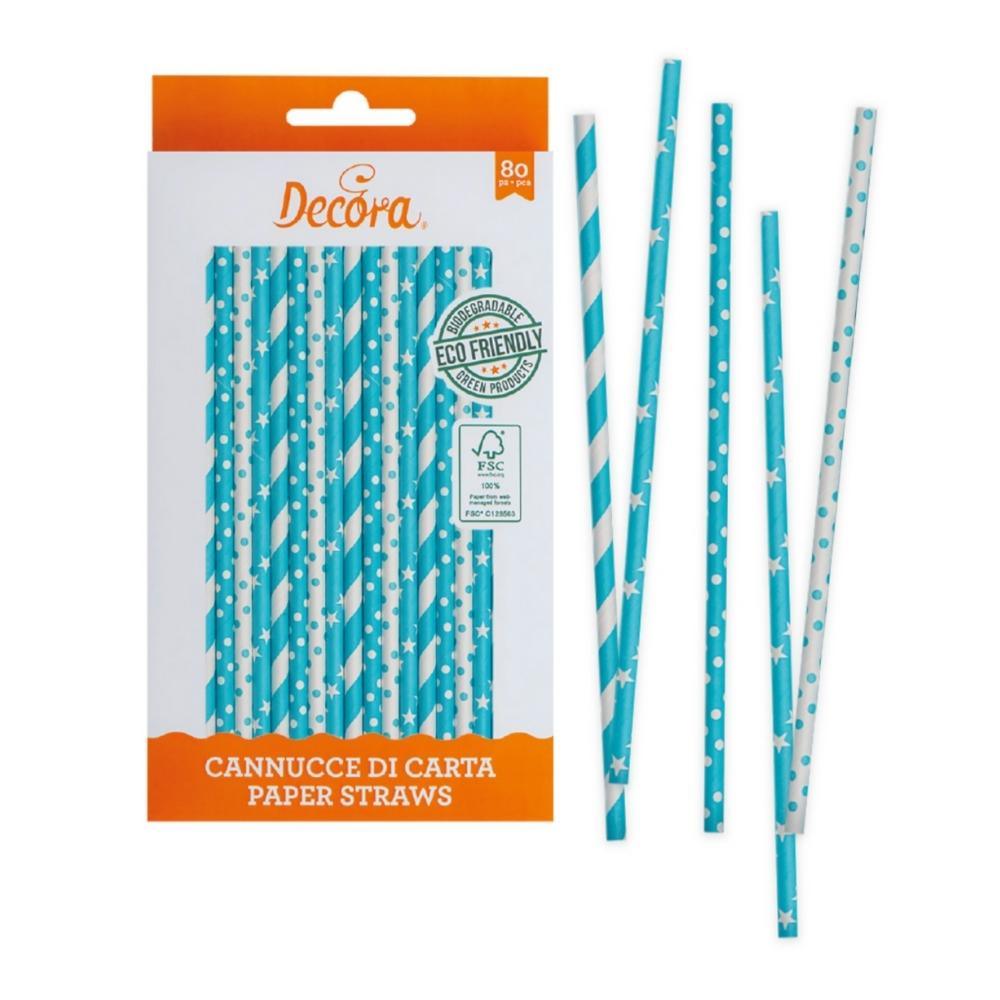 Papparör Decora - Stjörnur og doppur - Blá og hvít - Ø 0,6 x 21 cm - 80 stk