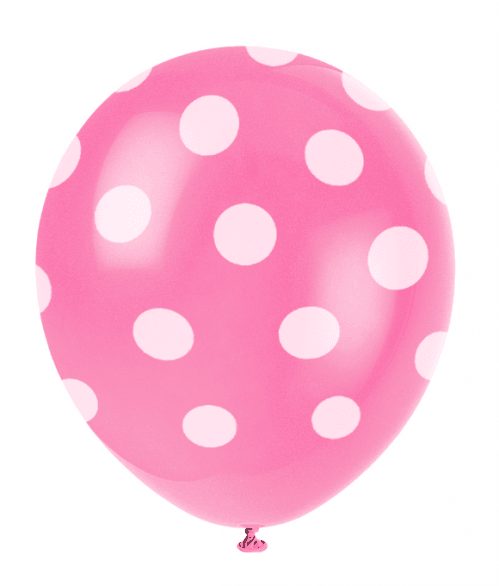 Blöðrur - Með hvítum doppum - 30 cm - 6 stk - Dökkbleikar