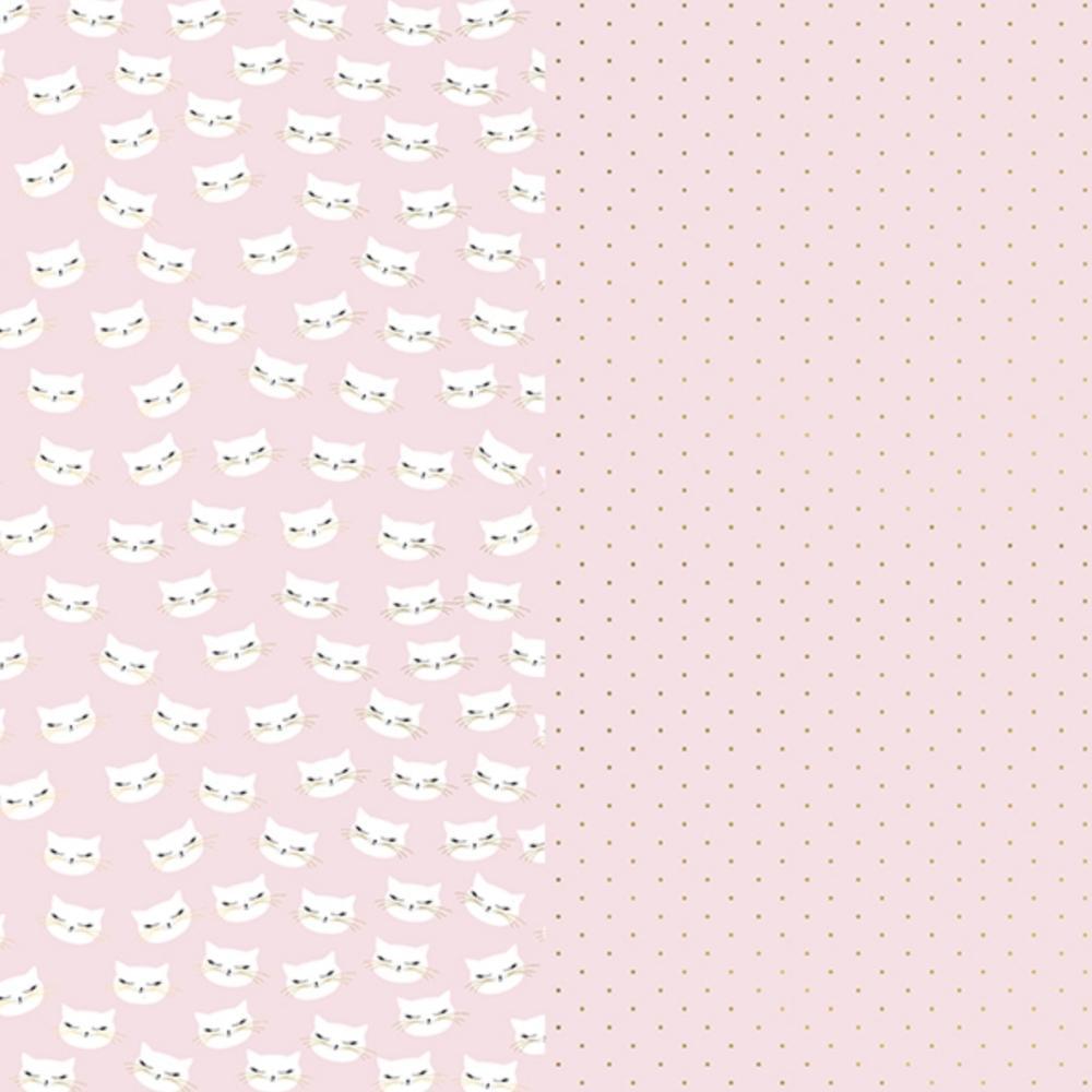 Gjafapappír - 70 x 200 cm - Bleikur með kisum og gylltum doppum - 2 rúllur í pakka