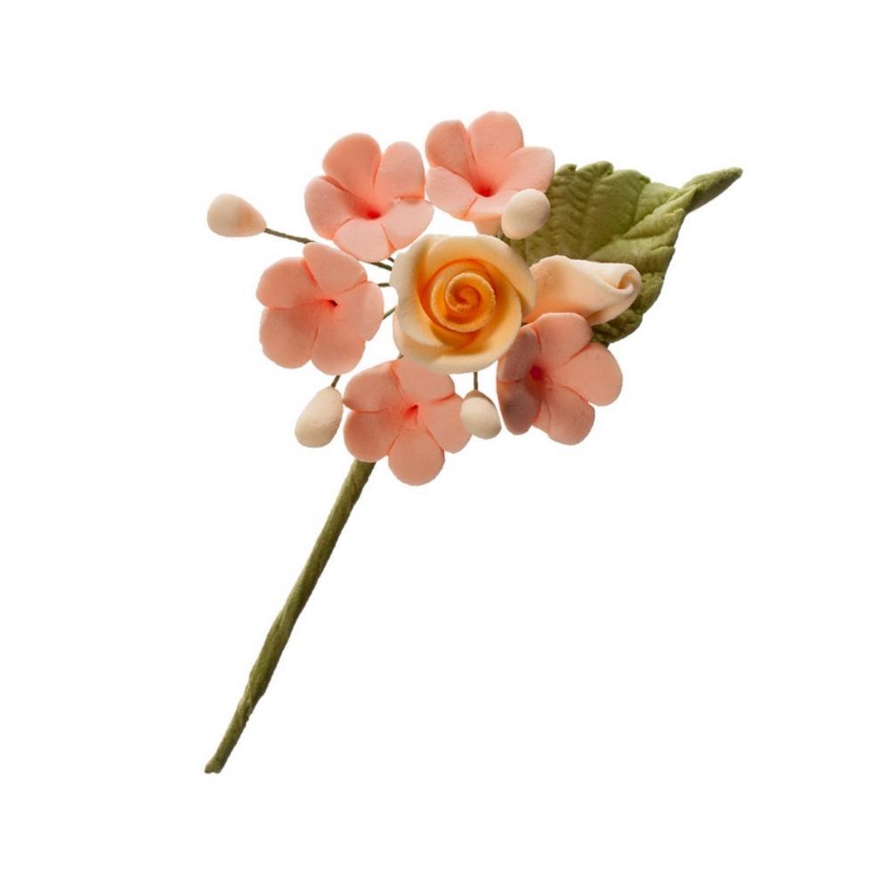 Skrauttoppur - Vöndur 6 cm - Ferskju/epli blóm og Rós