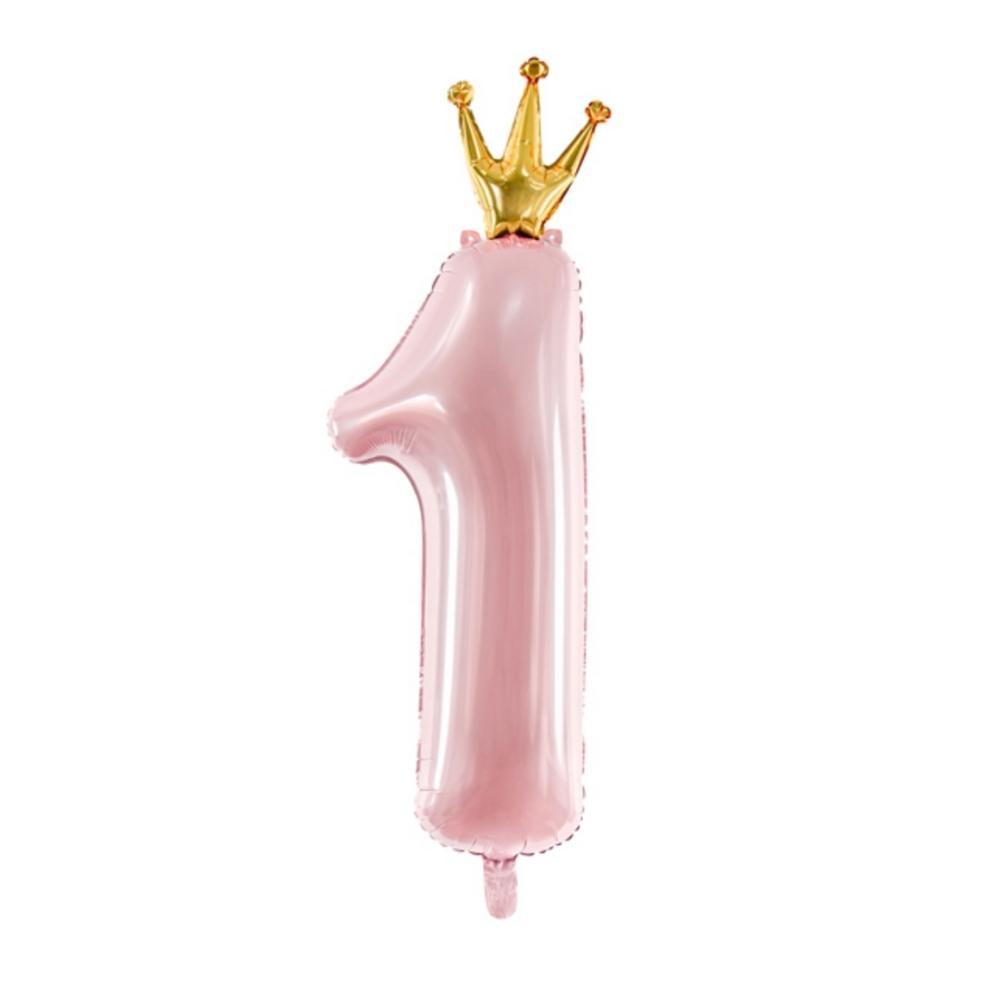 Álblaðra - Tölustafur - 1 með kórónu - 90 cm - Ljósbleik