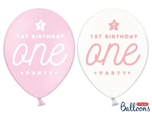 Blöðrur - Strong - One First Birthday - 30 cm - 6 stk - Bleikar