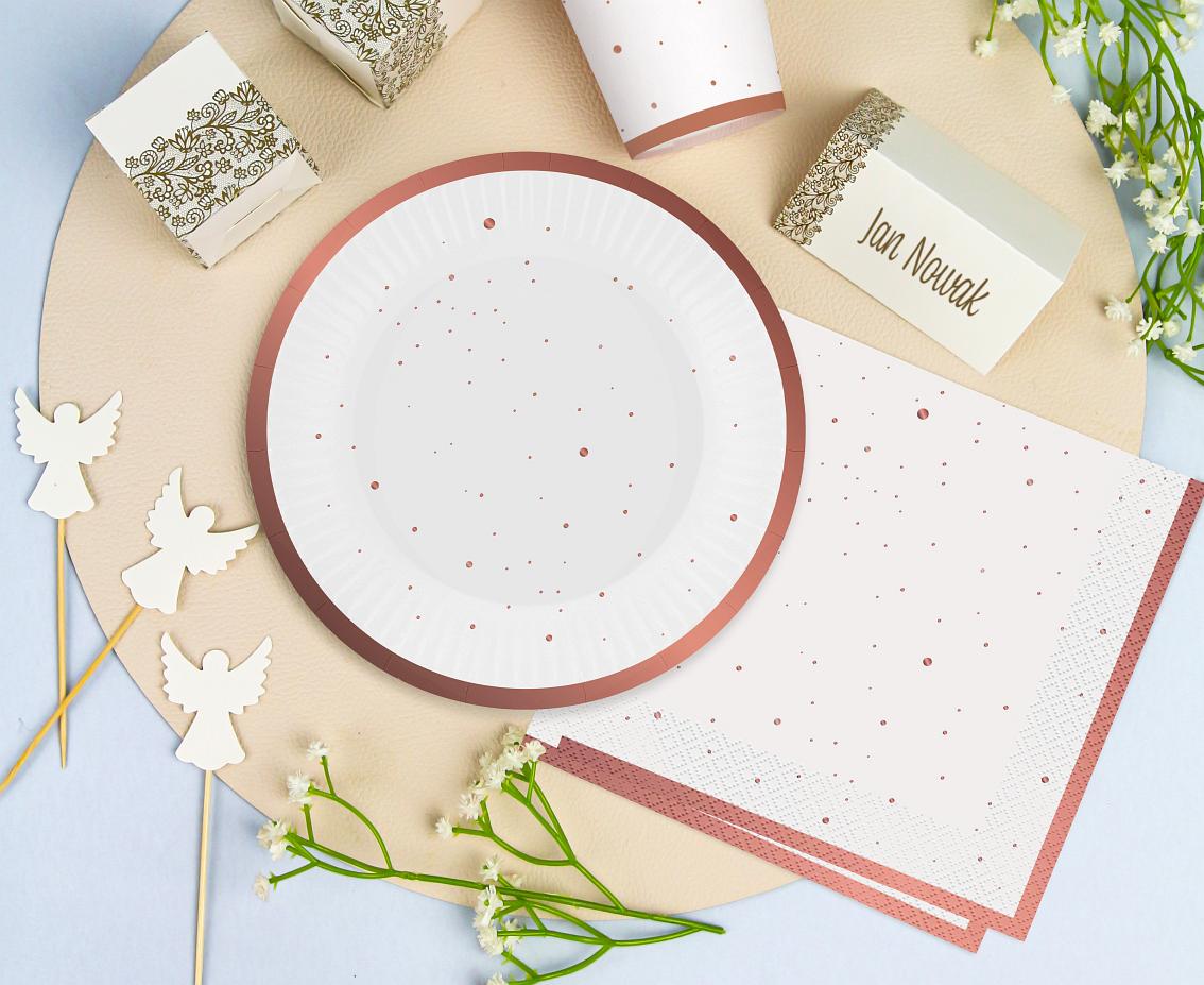 Pappadiskar - Celebrate - 18 cm - 6 stk - Hvítir og rosegold