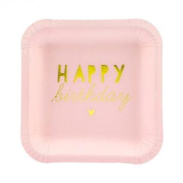 Pappadiskar - Happy Birthday - Bleikir - 14 cm - 6 stk
