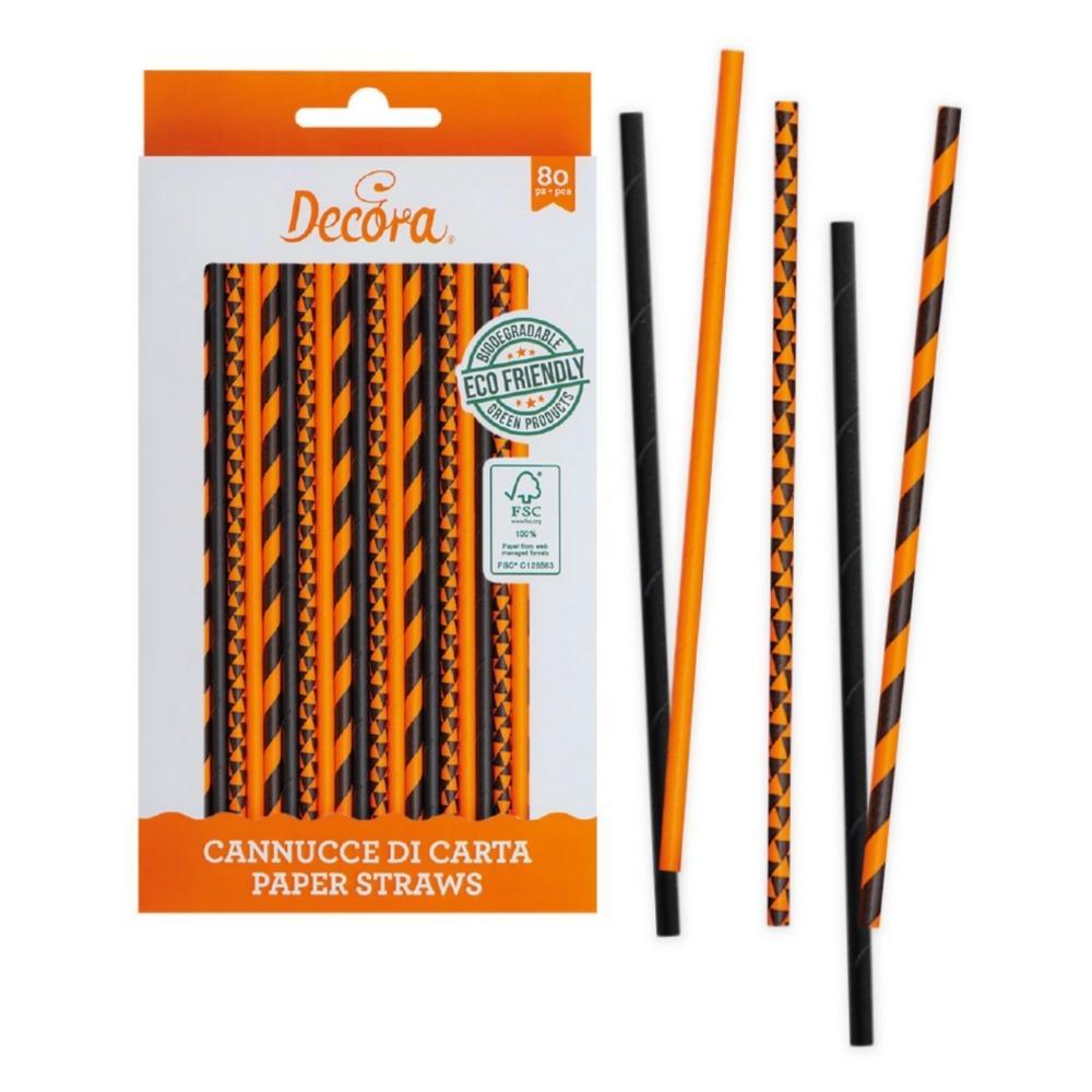 Papparör Decora - Appelsínugul og svört - Ø 0,6 x 21 cm - 80 stk
