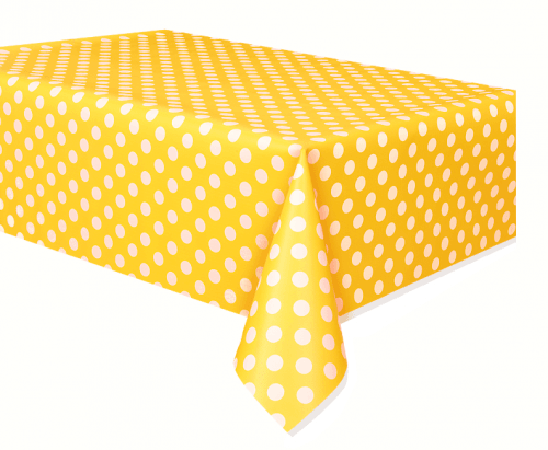 Plastdúkur - Með hvítum doppum - 135 x 275 cm - Sólblómagulur