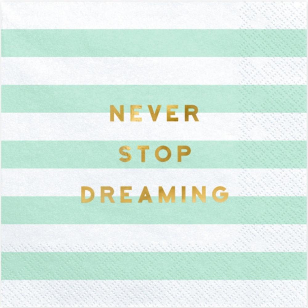 Servíettur - Never Stop Dreaming - Myntugrænar rendur - 33 x 33 cm - 20 stk