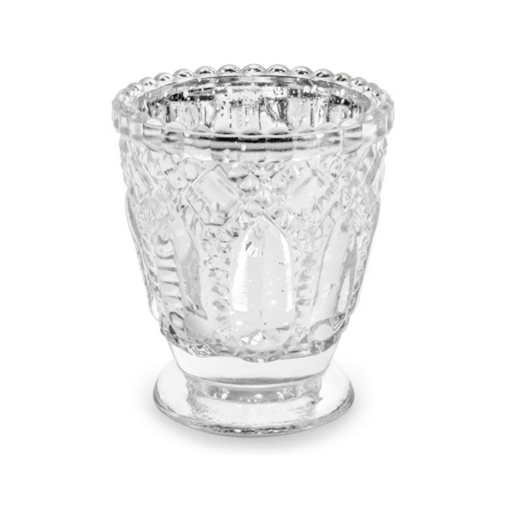 Borðskraut - Kertavasi - Gler - Silfur - 8 cm