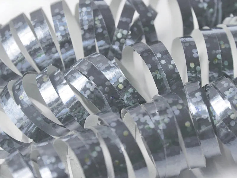 Krullubönd úr glanspappír - Holographic - 18 rúllur - Silfur