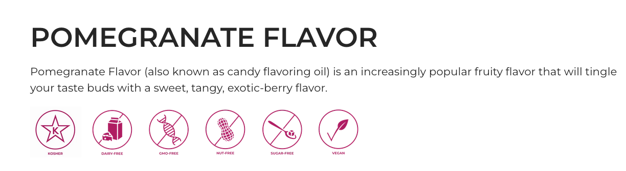 Bragðefnið er kjörið til þess að bragðbæta brjóstsykur, isomalt, súkkulaði, sykurmassa, kökubotna, krem, kökufyllingar, deig, konfektfyllingar og fleira.