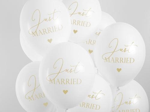 Blöðrur - Strong - Just Married - Hvítar og Gull - 30 cm - 6 stk