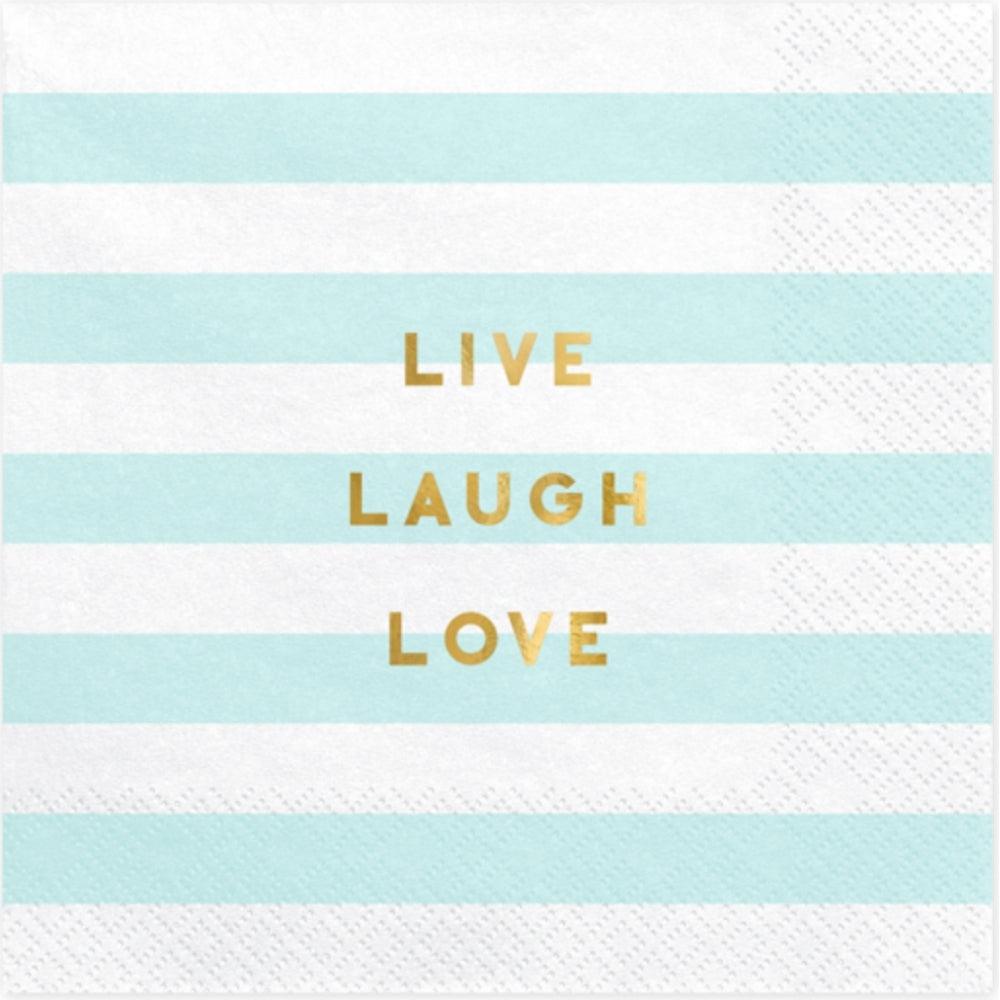 Servíettur - Live Laugh Love - Ljósbláar rendur - 33 x 33 cm - 20 stk