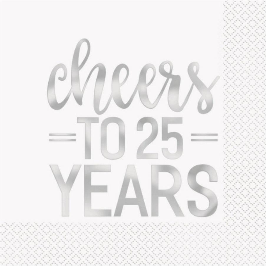 Servíettur - cheers To 25 YEARS- 33 x 33 cm - 16 stk