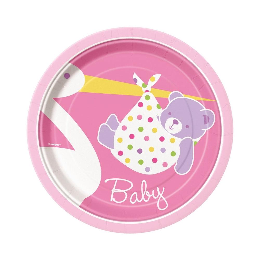 Pappadiskar - Bleikur storkur - 18 cm - 8 stk