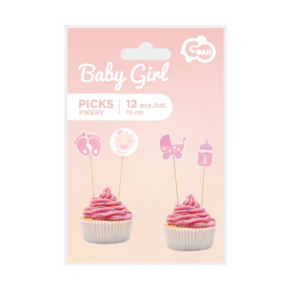 Skrautpinnar - Baby Girl - 10 cm -12 stk - Ljósbleikt