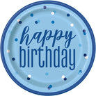 Pappadiskar - Glitz - happy birthday - 22 cm - Bláir