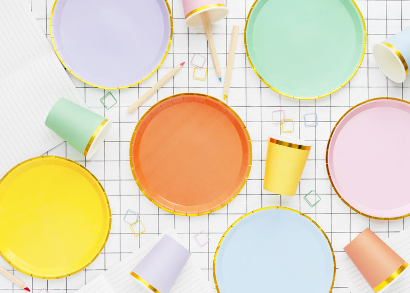 Pappadiskar - Pastellitir - Með gyllingu - 21 cm - 6 stk