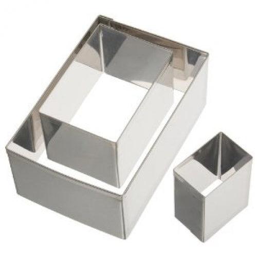 Sett með 3 rétthyrndum mótum í mismunandi stærðum. Mótin eru úr ryðfríu stáli.