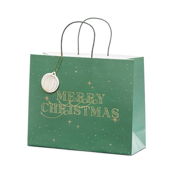 Gjafapoki - Merry Christmas - Grænn - 32,5 x 26,5 x 11,5 cm