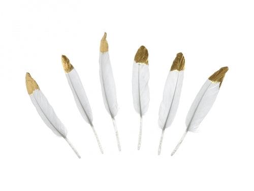 Borðskraut - Fjaðrir - Hvítar með gyllingu - 10-16 cm - 6 stk