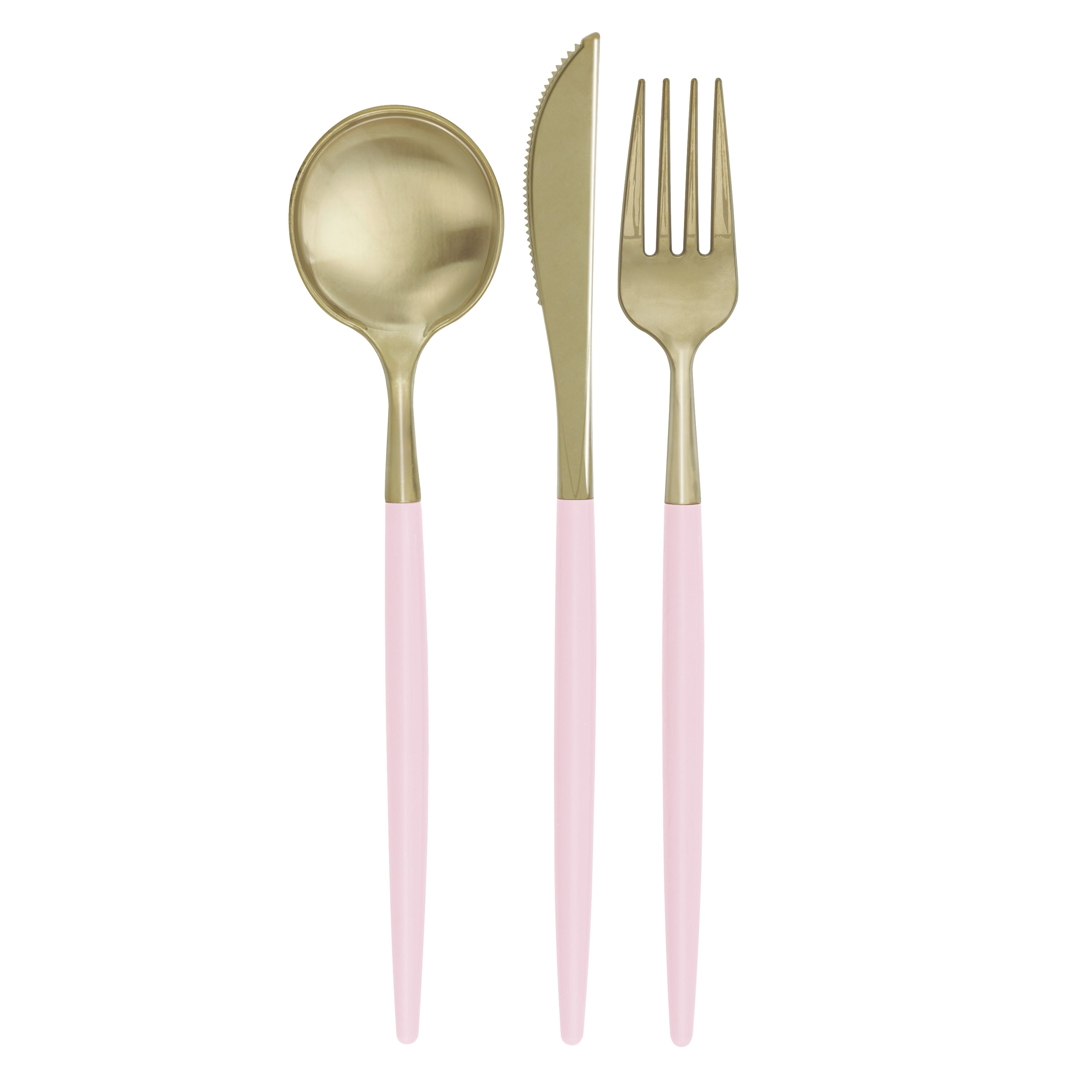 4 skeiðar, 4 hnífar og 4 gafflar úr plasti.