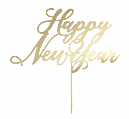 Kökuskilti - Happy New Year - Gyllt - 24 cm