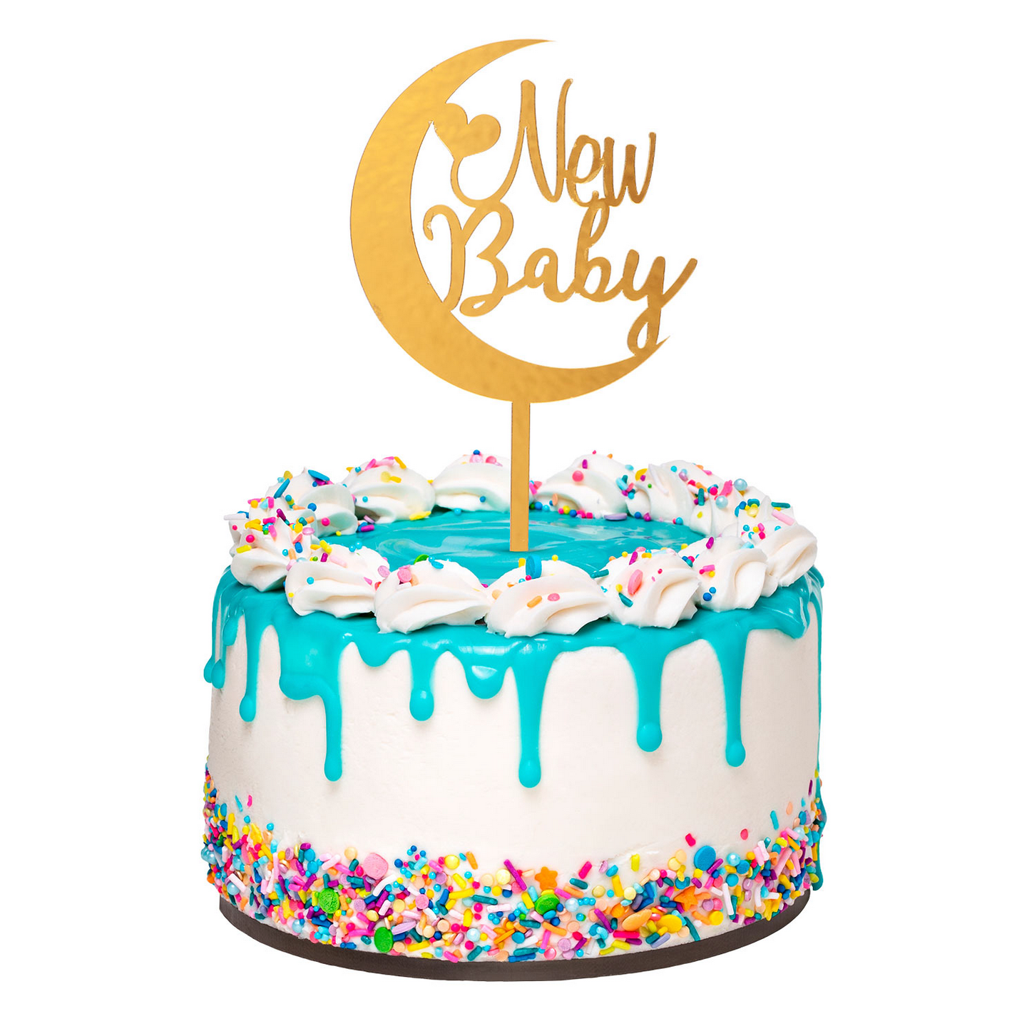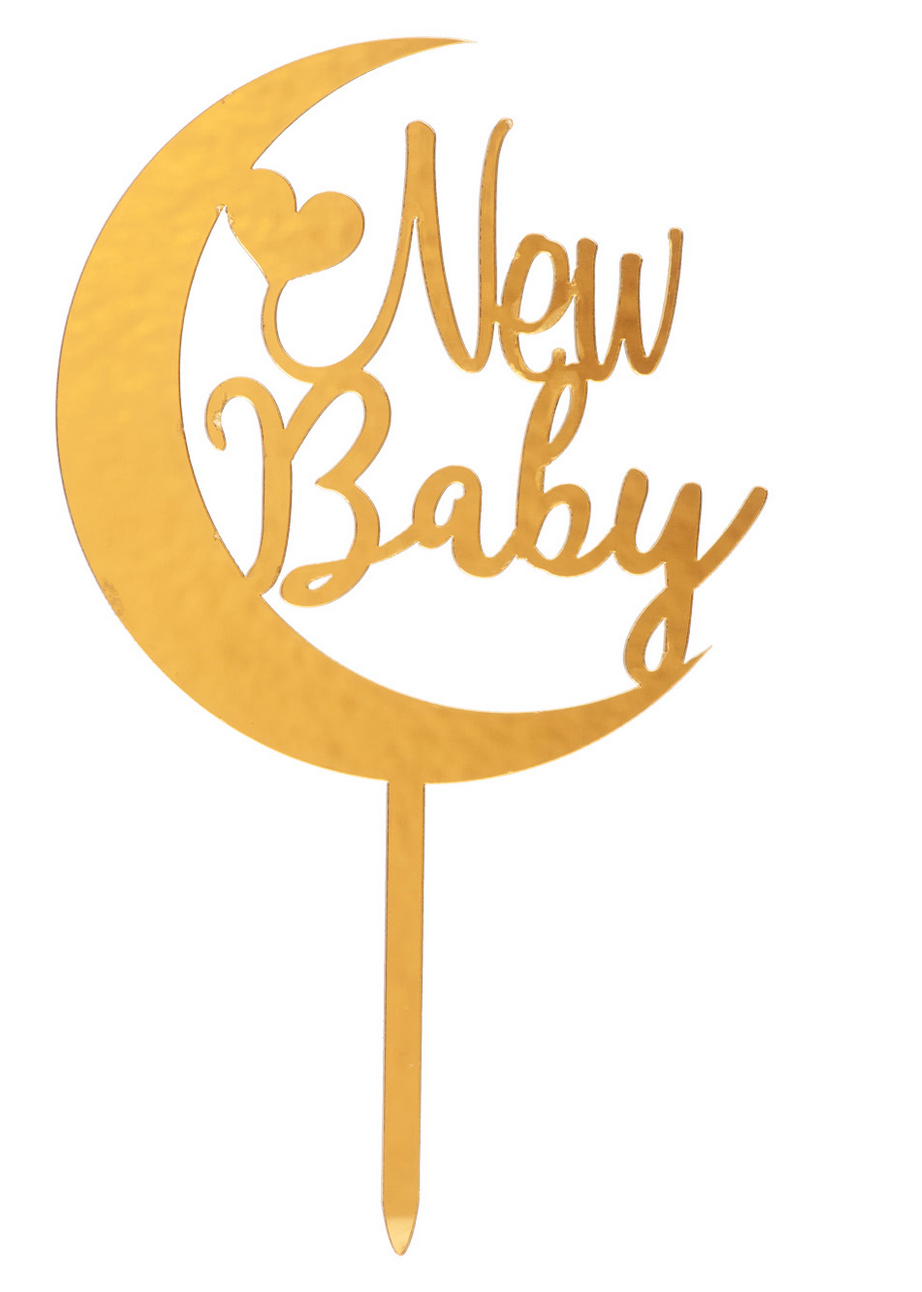 Kökuskilti - New Baby - 17 x 10 cm - Gyllt
