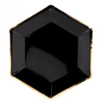 Pappadiskar - Sexhyrndir - Svartir með gylltri rönd - 20 cm - 6 stk