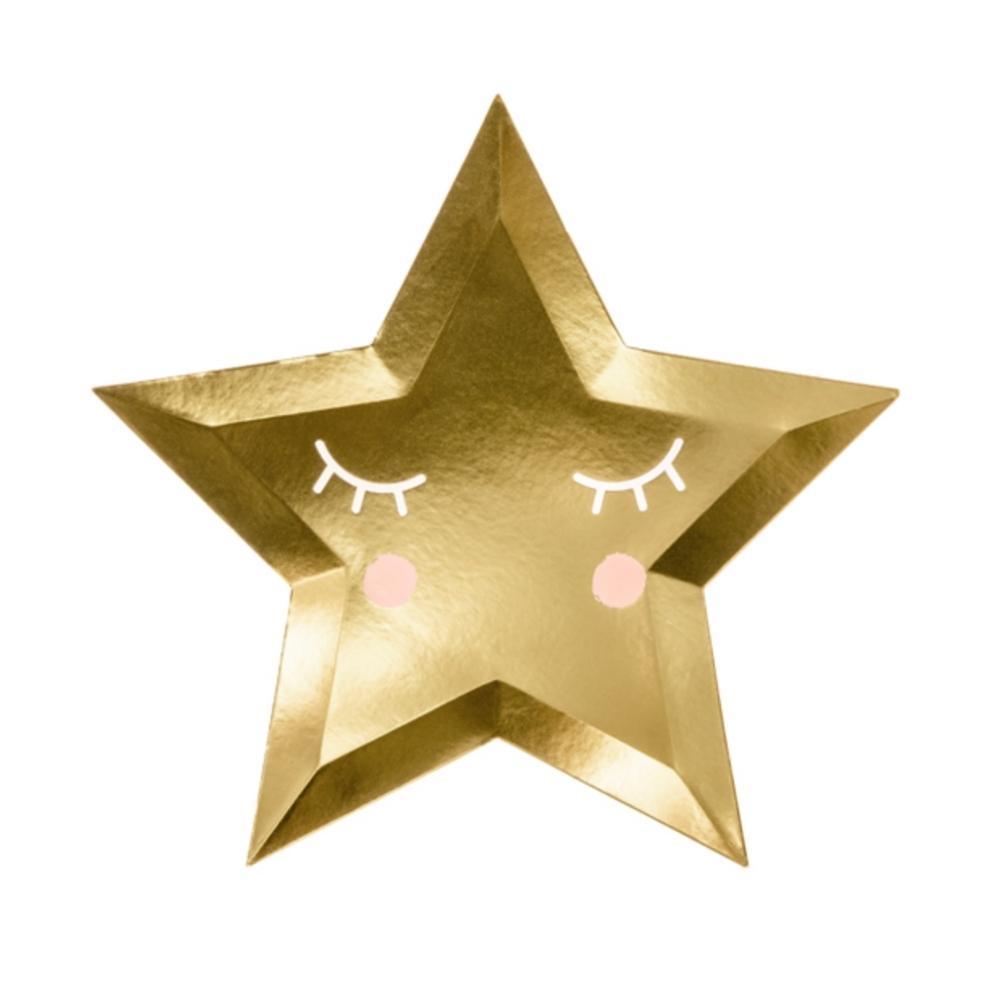 Pappadiskar - Stjarna - Gyllt með bleiku - 27 cm - 6 stk