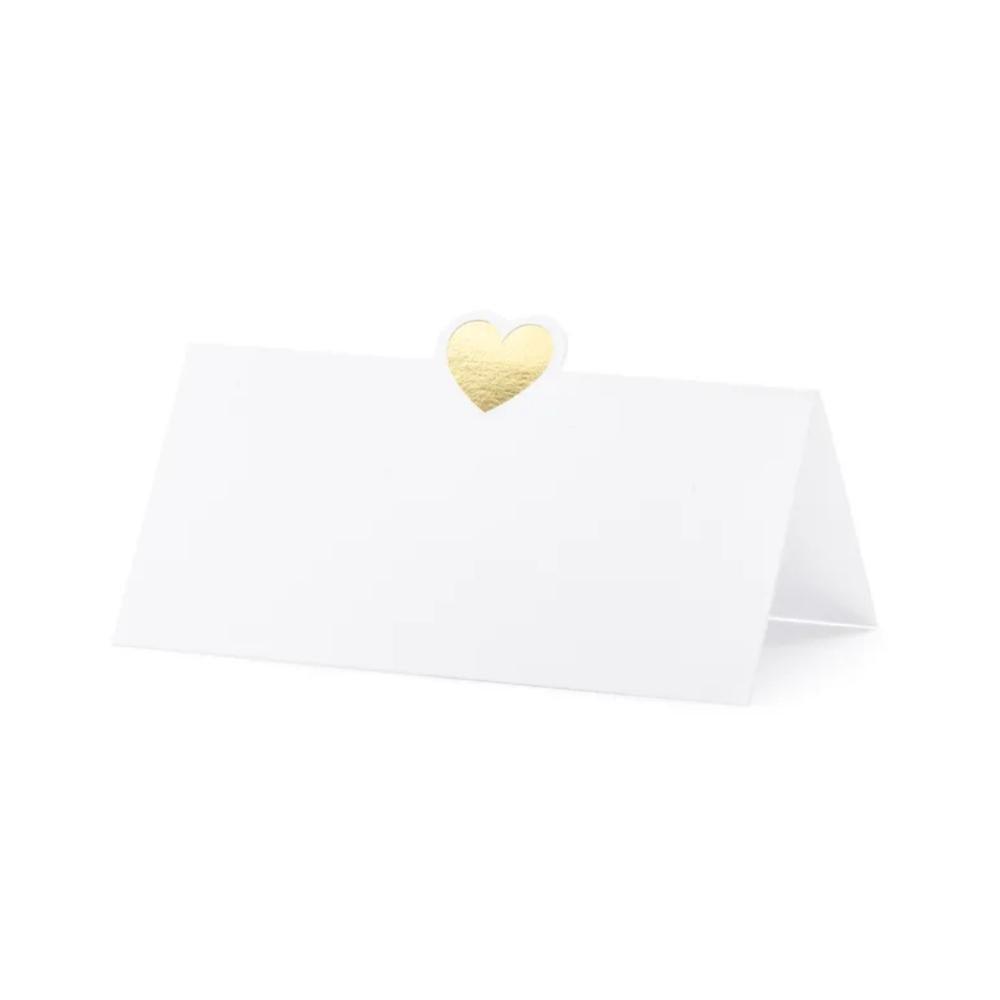 Sætismerkispjöld - Hvít með gull hjarta - 10 stk
