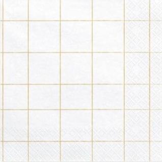 Servíettur - Ferningar - Hvítar og gylltar - 33 x 33 cm - 20 stk