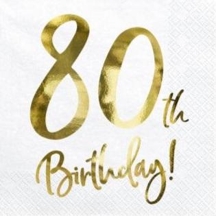 Servíettur - Happy Birthday - Hvítar og gylltar - 33 x 33 cm - 20 stk - 80