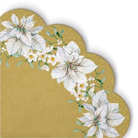 Servíettur - Kringlóttar - White Poinsettia - 32 cm - 12 stk - Gylltar