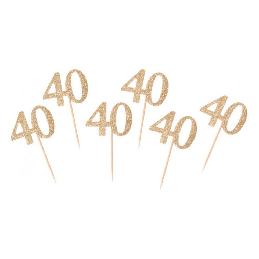 Skrautpinnar - 40 ára - Gull - 10 cm - 6 stk