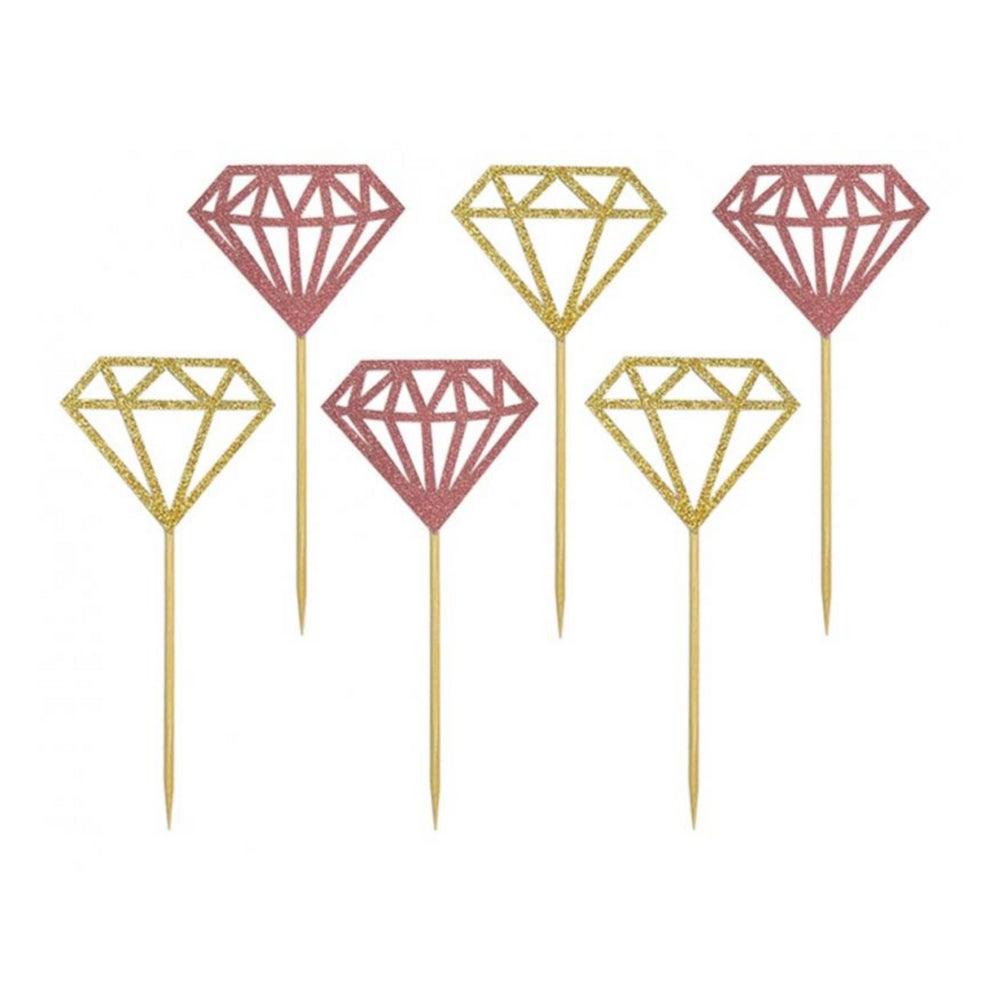 Skrautpinnar - Demantar - Gylltir og bleikir - 15 cm - 6 stk