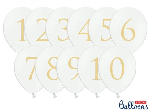 Blöðrur - Strong - Númer 0-9 - Pastel - 30 cm - 11 stk - Hvítar og gylltar