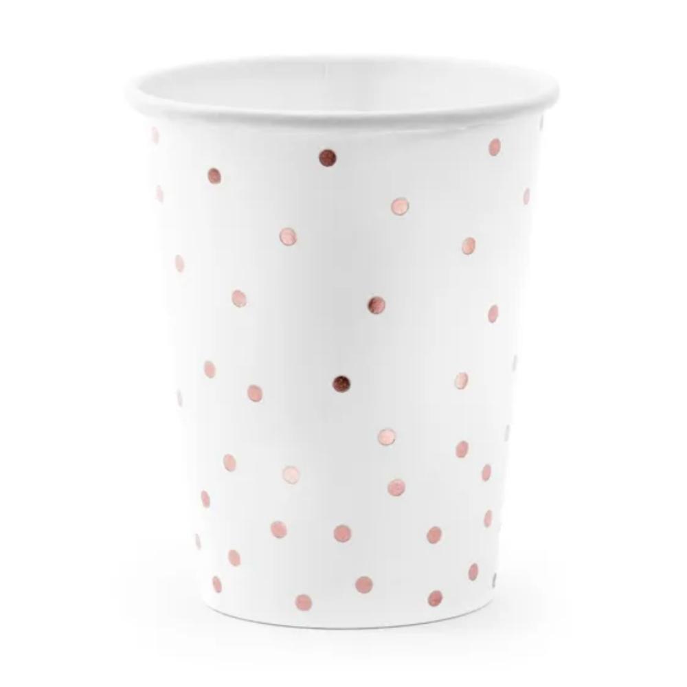 Pappaglös - Pastel - Hvít með Rose Gold doppum - 260 ml - 6 stk