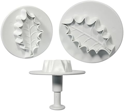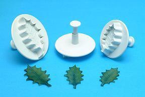 Frábær mót til þess að skera út jólalauf. Mótin eru með stimpli svo það er einkar auðvelt að ná sykurmassanum eða deiginu úr mótunum. Ef þú þrýstir takkanum niður á meðan massinn er enn á borðinu kemur mynstur í sykurmassann eða deigið.